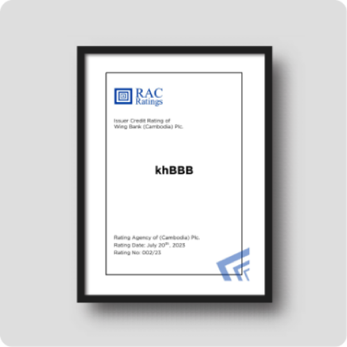For full details about our credit rating, please contact our treasury team via wingtreasury@wingbank.com.kh.
