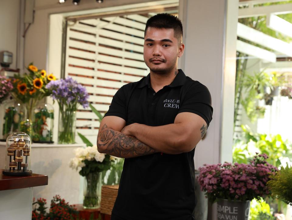 Hailing from Kampong Chhnang Province, Khiev Linda, 36, also known as Din, is the owner of La Mémoire, a flower decoration enterprise that blends Khmer artistry with modern design located in Toul Tompong, Phnom Penh.