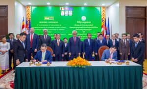 Ministry of Economy and Finance, represented by H.E. Dr. Kong Marry, Secretary of State of the Ministry of Economy and Finance, and Wing Bank (Cambodia) Plc., represented by Mr. Han Peng Kwang, CEO of Wing Bank, and Neak Oknha Kith Meng, Chairman of Wing Bank and Chairman and CEO of the Royal Group of Companies, signed a Memorandum of Understanding (MoU) on “Collaboration Within the Framework of Digital Economy and Financial Technology Development in Cambodia” presided over by H.E. Dr. Aun Pornmoniroth, Deputy Prime Minister, Minister of Economy and Finance. The MoU signing ceremony was attended by the management from the Ministry of Economy and Finance, Royal Group of Companies, Wing Bank, and representatives of private sector, including financial institutions, associations, and other relevant institutions.