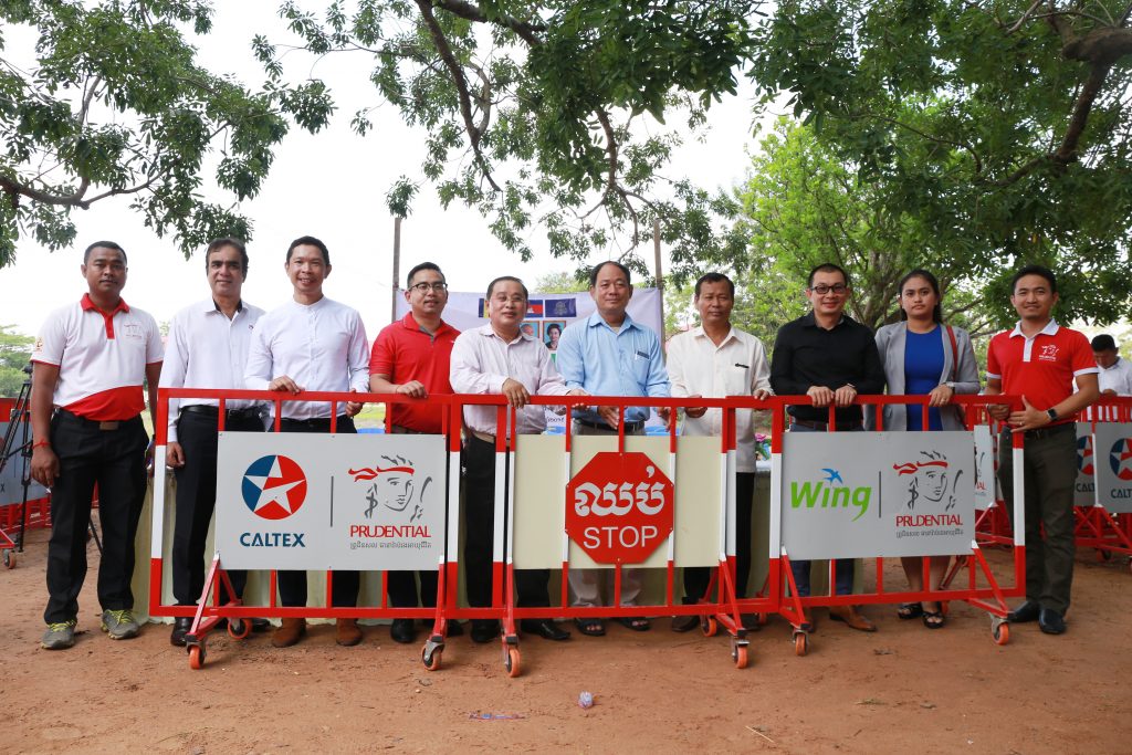 Phnom Penh, 30 May 2019 – Prudential Cambodia has joined hands with Wing (Cambodia) Limited Specialised Bank and Chevron to donate 70 road safety barriers to more than 17 schools across Cambodia, with an aim to promote road safety among school children in the Kingdom.