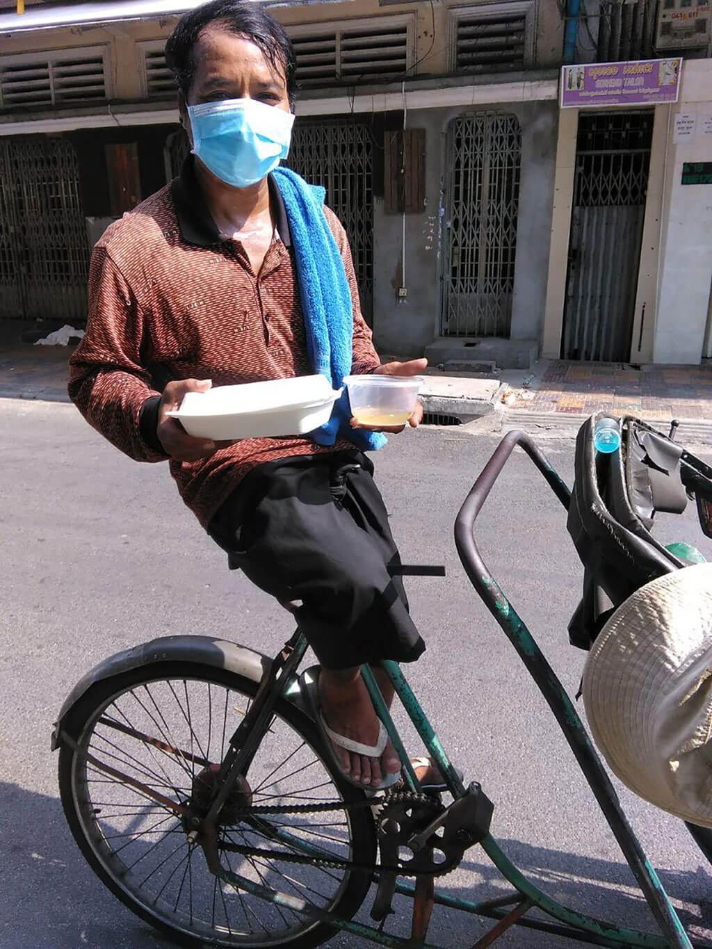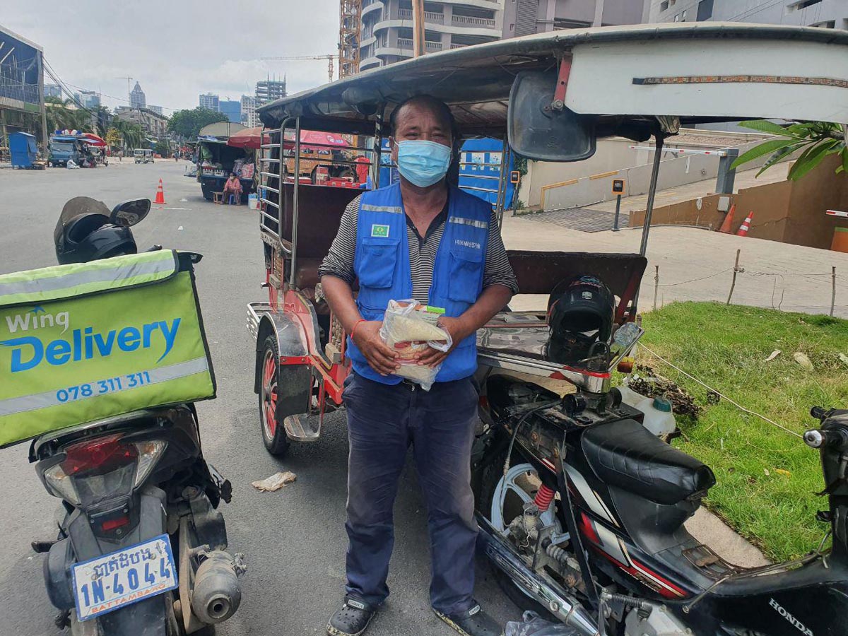 Chun Thorn, a cyclo driver and recipient of donations, said that the deliveries benefited migrant workers, rubbish workers and countless others who have been struggling during the pandemic.