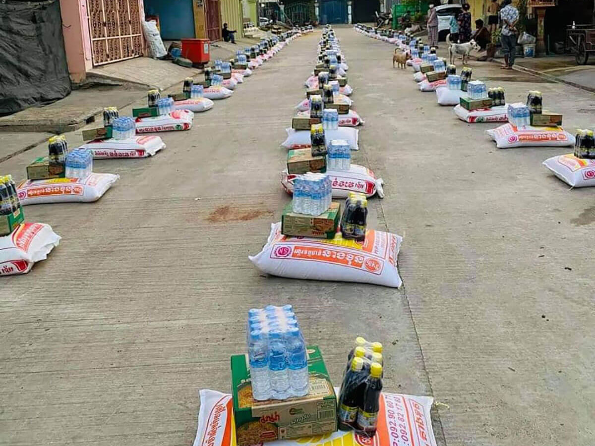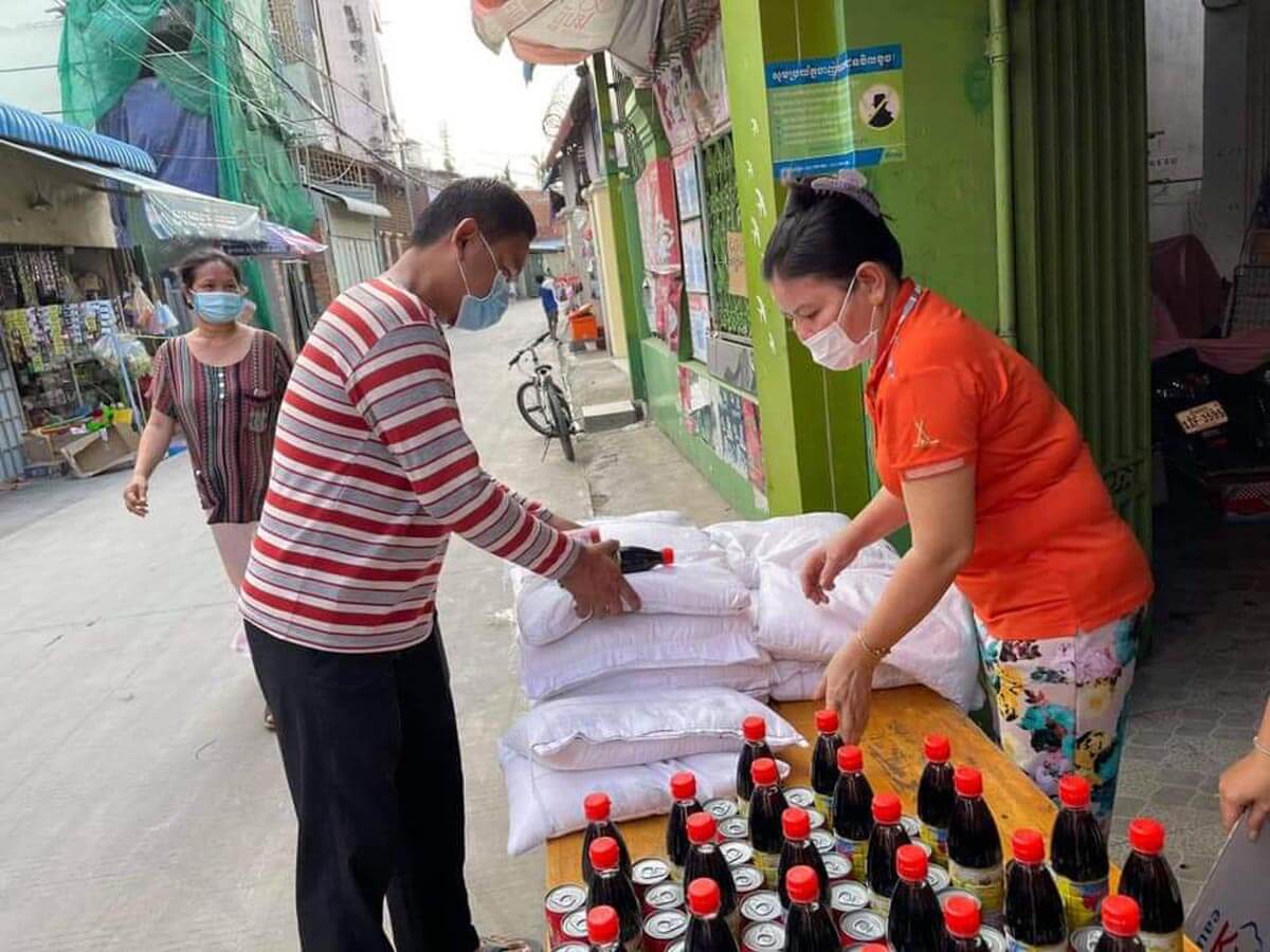 Tann SeakLeang, 30, from Steung Meanchey district in Phnom Penh, provided donations including 300 kilograms of rice, as well as fish cans, and fish sauce from her kiosk. Most of the members of her community are construction workers and scavengers. “My contribution is not that much but it will help reduce the burden on their families. My mum and I have been living here for nearly 30 years now. We want to help our neighbors,” she said.