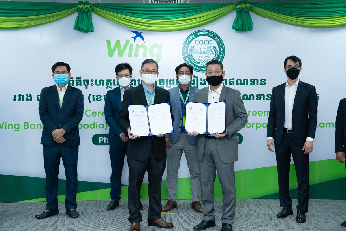 Wing Bank (Cambodia) Plc and the Credit Guarantee Corporation of Cambodia (CGCC) officially kick off the credit guarantee agreement to collaborate on disbursing loans to business operators in Cambodia who may face difficulty obtaining loans due to lack of sufficient collaterals.
