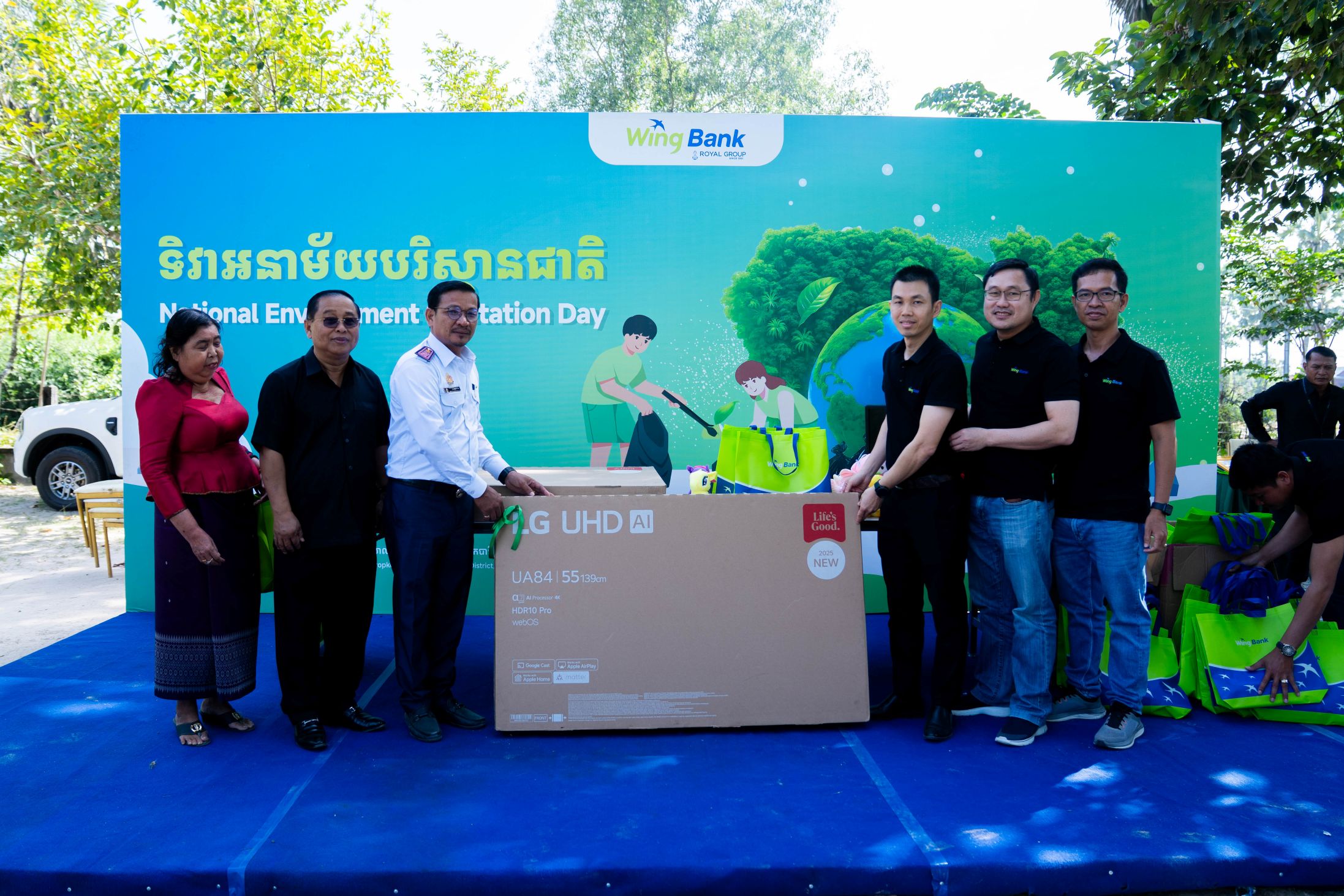 Environmental responsibility also featured prominently in the Bank’s CSR activities. During World Environment Month, Wing Bank supported anti-plastic initiatives in Sangkat Steung Mean Chey. On Arbor Day, the Bank funded tree planting and facility upgrades at Saen Sokh Primary School, benefiting 172 students.
