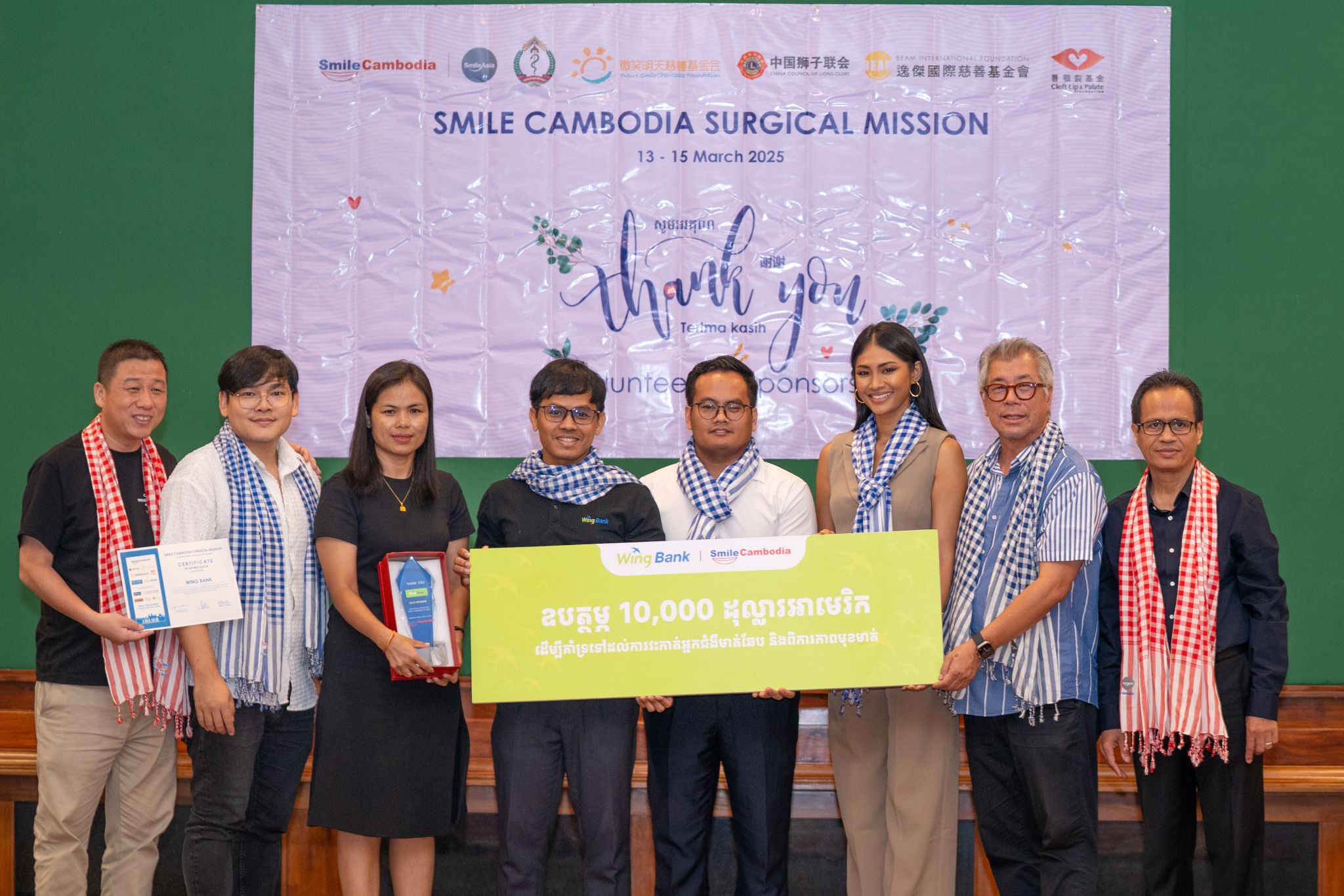 Support also extended to specialised care. Wing Bank donated USD 10,000 to Smile Cambodia, enabling free surgeries for more than 120 patients with cleft lips, palates, and facial deformities.