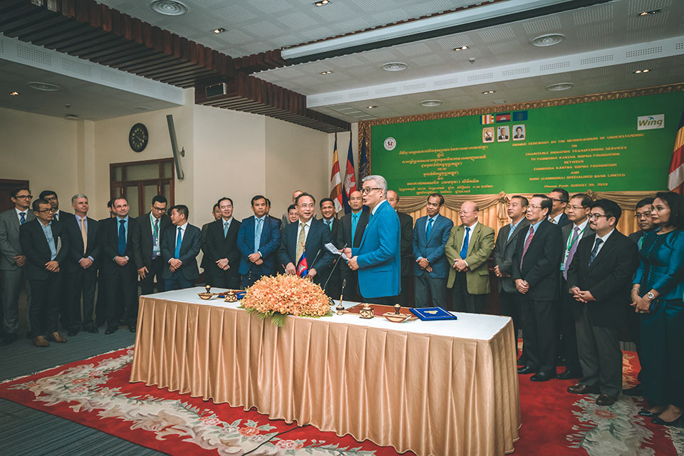 Held at Ministry of Economy and Finance, H.E Akka Bandith Sakphea Char Aun Porn Monyroth, Senior Minister of Economy and Finance as well as the Board of Trustee for the Kantha Bopha foundation has signed an MoU agreement with Wing (Cambodia) Limited Specialised Bank on “Charitable Donation Transferring Service to Kantha Bopha Foundation”.