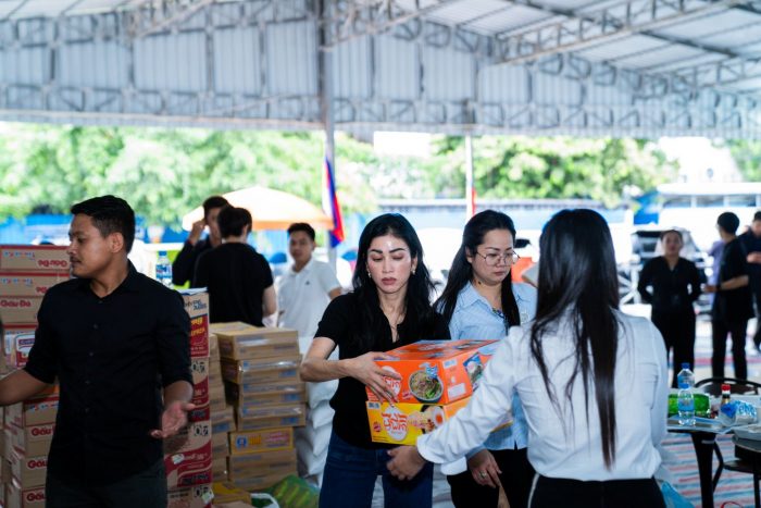 The humanitarian mission, led by Lok Chumteav Neak Oknha Mao Chamnan, Vice Chairwoman of RGC and President of the Khmer Artist Association, reached hundreds last Friday. 300 pallets were delivered to the Wat Toul Andaet Displacement Camp, and relief packages were distributed to 544 families at Wat Trava Kiet.