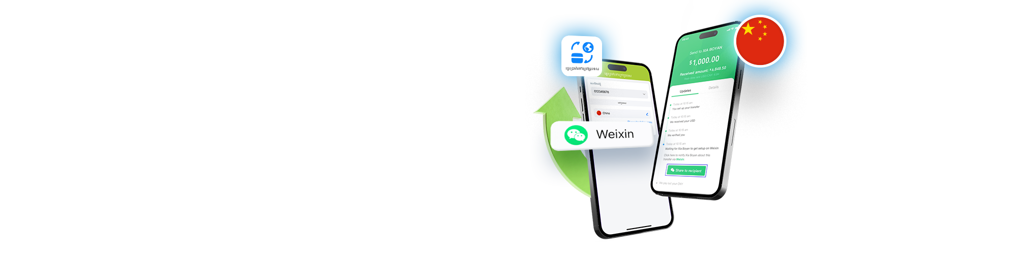 Money transfer to China and credit directly to the recipient's WeChat or Weixin wallet.
