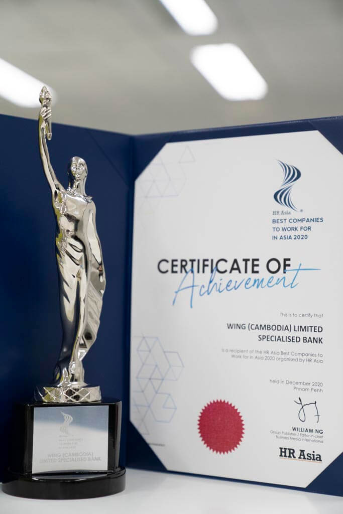ធនាគារឯកទេសវីង (ខេមបូឌា) លីមីតធីត ត្រូវបានទទួលស្គាល់ជាមួយនឹងពានរង្វាន់ចំនួន ៣ សម្រាប់ការប្តេជ្ញាចិត្តរបស់ខ្លួនចំពោះនិយោជិតនៅឆ្នាំ ២០២០ ខណៈពេលមានបញ្ហាប្រឈមនៃជំងឺរាតត្បាត។