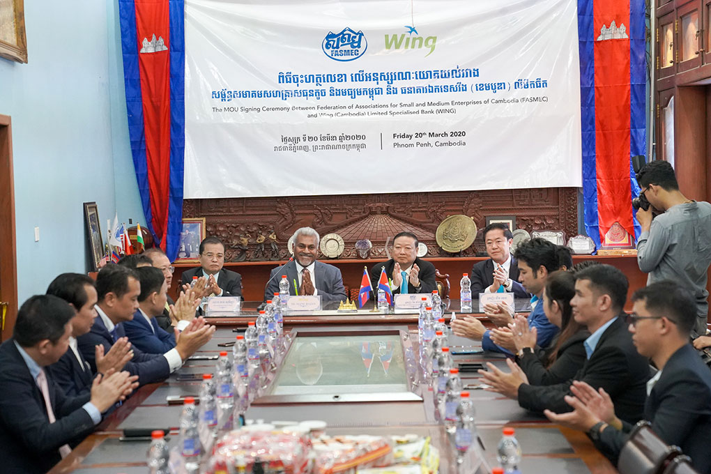 ភ្នំពេញ ថ្ងៃទី២០ ឆ្នាំ២០២០៖ ធនាគារឯកទេសវីង ដែលជាអ្នកផ្តល់សេវាធនាគារចល័តឈានមុខគេនៅកម្ពុជា និង សម័្ពន្ធសមាគមសហគ្រាសធុនតូច និងមធ្យមកម្ពុជា បានចុះអនុស្សរណៈនៃការយោគយល់គ្នាអំពីកិច្ចព្រមព្រៀងភាពជាដៃគូថ្មីដើម្បីផ្តល់នូវមធ្យោបាយក្នុងការគ្រប់គ្រងហិរញ្ញវត្ថុកាន់តែប្រសើរឡើងដល់សមាជិកខ្លួនតាមរយៈដំណោះស្រាយហិរញ្ញវត្ថុឌីជីថលរបស់វីង។