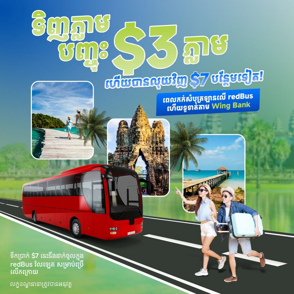 - នៅពេលទូទាត់ សូមបញ្ចូលប្រូម៉ូកូដ៖ REDBUSWING